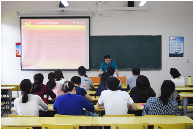为进一步提高基层党支部委员的政策理论水平和素质能力,促进党支部工作规范化、制度化、标准化建设,增强基层党组织的凝聚力和战斗力,结合我校党支部标准化建设的工作实际,医学部党委于2018年5月12日上午8:30在20栋105教室开展2018年基层党支部委员培训班,培训班邀请了井冈山大学党委党校专职副校长梁景宏进行辅导,医学部党委书记肖游章、副书记习宁英、专职组织员、各党支部委员和入党积极分子代表等二十余人参加了此次培训。