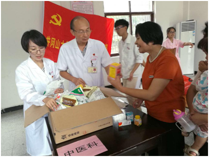 与此同时,学生党员纷纷运用所学,为村民量血压、测心率、熏艾、推拿,义诊现场气氛热烈,群众反响良好。随后,党员们向村民们免费分发了价值1200元人民币的防暑药物如十滴水、清凉油和日常用药感冒冲剂、川贝枇杷露等等,为他们身体健康、预防疾病献力献策,得到了广大村民们的一致好评。