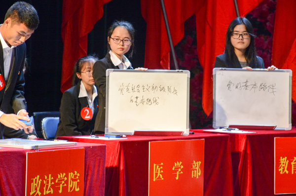 2016年12月12日晚,“两学一做,紧跟党走”党知识竞赛决赛在八栋音乐厅正式开赛。本次比赛,经过了一个月的紧张比赛,共有八组来自不同学院的选手脱颖而出。医学部代表队参加了本次知识竞赛决赛,并喜得三等奖。