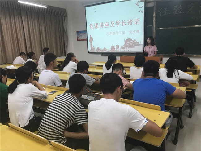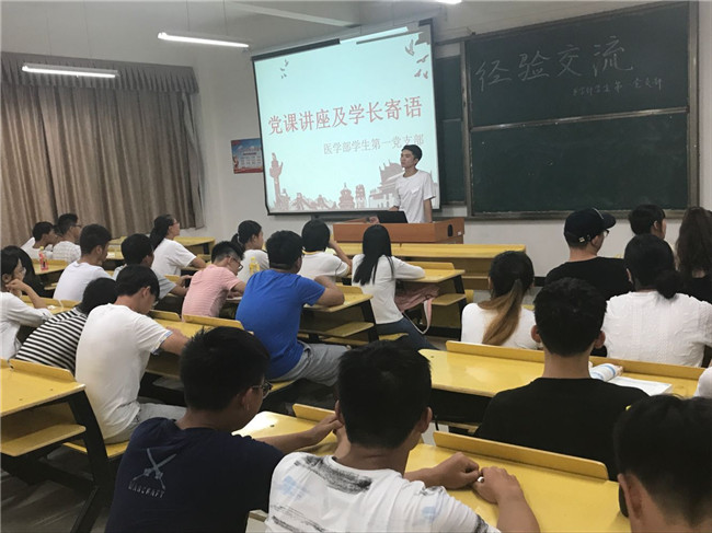 10月9日,医学部学生第一党支部在20栋309教室开展新生寄语活动。党支部书记郭敏娜老师出席活动,14临床本3班郭昌杨、14临床本3班吴海娟、14临床本3班王丽娜、14临床本3班田新、15临床本2班马静、15临床本3班黄佳丽六位优秀学长学姐就学习、科研比赛、社团、班级及团学工作等方面,与17级临床专业全体新生进行了经验分享。