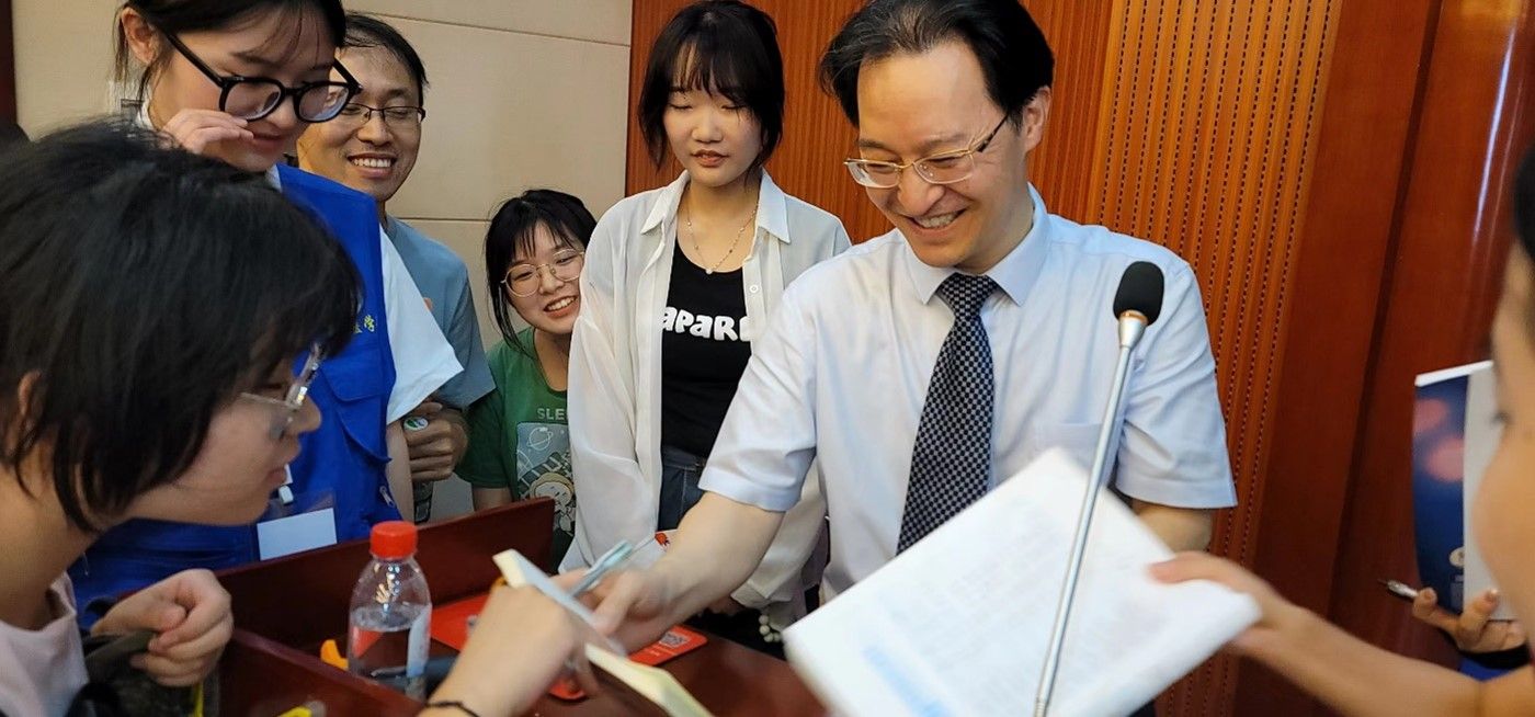 讲座后,周永胜教授与同学们积极互动,并在自己主编的《口腔修复学》等书籍上为同学们签名和合影。(图文:肖松)