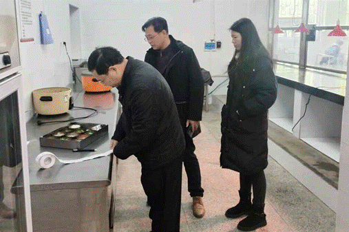 肖游章、谭立宇实地查看了食堂就餐环境、后厨制作区域、食品储存仓库等场所卫生情况。认真翻阅工作台账,详细询问食品原材料采购、加工制作、清洗消毒、食品留样等情况,并要求食堂保持清洁卫生、定期消毒,注意食材新鲜度、确保饮食安全,经常更新菜品、提高品质、吸引更多学生到食堂就餐,让学生有家的感觉,促进学生健康成长。