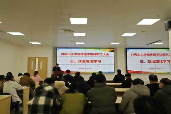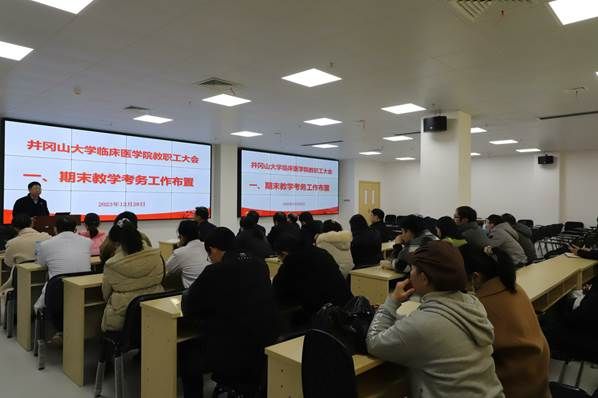 12月28日下午,附属医院(临床医学院)召开教职工大会,党委书记肖游章、院长谭立宇、副院长刘旭阳出席会议,全院所有授课老师、校编教职工参加。会议由党委副书记李明敏主持。