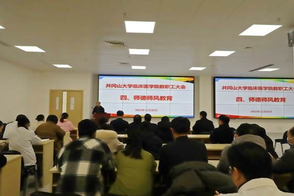 党委书记肖游章就学院思想政治、意识形态、网络安全、师德师风建设等方面进行了重点强调。希望全院教职工增强主人翁精神,以校为荣,爱校如家,自觉维护学院的政治安全、网络安全等,牢记“守土有责、守土负责、守土尽责”的工作要求,促进平安校园建设。要涵养优良的师德风范,积极营造学术研究有底线、课堂讲授有纪律、公开言论守规矩的良好氛围,为促进临床医学院高质量内涵式发展作出应有的贡献。