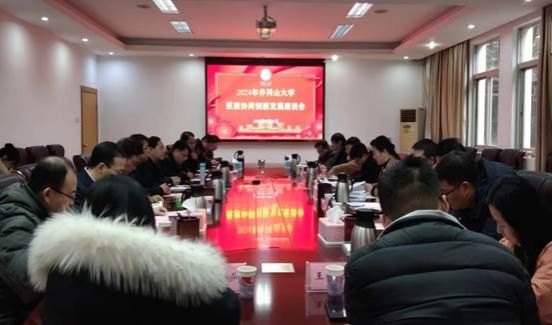 1月21日下午,学校召开2024年井冈山大学医教协同创新发展座谈会。校党委副书记、校长罗旭彪,校党委常委、副校长廖岚,校长助理张赫出席会议。医学部、临床医学院、基础医学院、中医药学院、护理学院领导班子,井冈山大学附属医院、附属吉安市中心人民医院(上海市东方医院吉安医院)、附属泰和县中医院、附属吉安市第三人民医院、附属吉安市妇幼保健院的领导参加了座谈会。