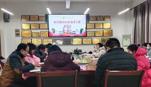 一年之计在于春,2月25日上午,医学部在17栋四楼会议室组织召开2024年春季开学工作布置会。学部及所属各学院行政工作负责人出席会议。学部主持行政工作副主任宋明霞主持会议。医学部各职能科室、学院教科研和综合科负责人参加会议。