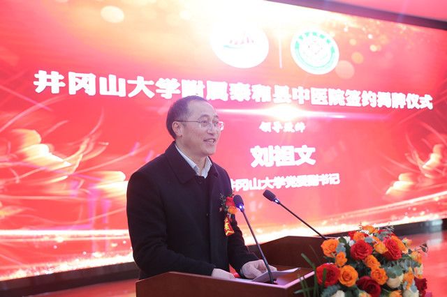 刘祖文指出,井冈山大学附属泰和县中医院的揭牌,是贯彻落实党的二十大精神,推进“健康中国”、“幸福江西”和“全省共富共享美好生活实践区”建设的具体体现,也是保障革命老区人民生命健康和民生福祉的重要举措,有利于提升井冈山大学医学教育水平和泰和县中医院医疗服务水平。刘祖文表示,学校将以此次揭牌为契机,共同推动拓展合作新空间,共同推动学校医学人才培养质量与医院医疗水平提升,共同推动革命老区医学教育医疗事业革命高质量发展,共同深化双方合作友谊。