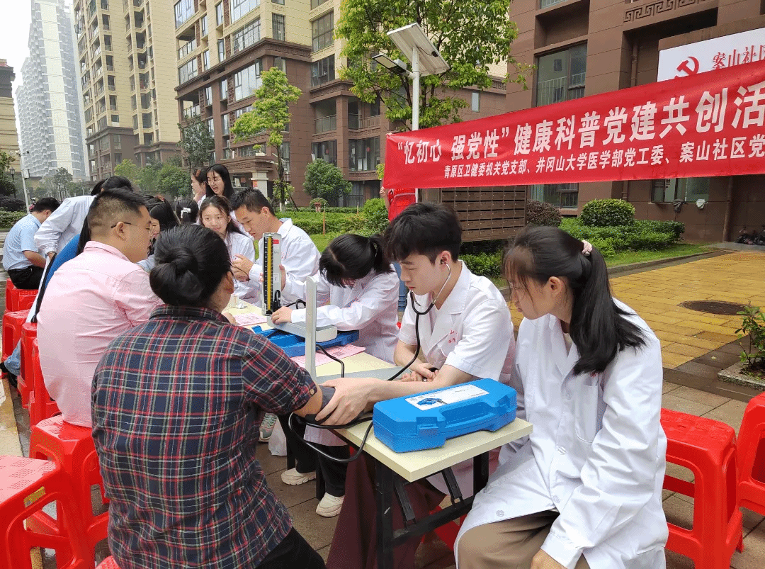 4月16日,井冈山大学医学部党工委、青原区卫健委机关党支部、区疾控中心党支部走进河东街道案山社区与案山社区党支部联合开展“忆初心 强党性”健康科普党建共创活动。