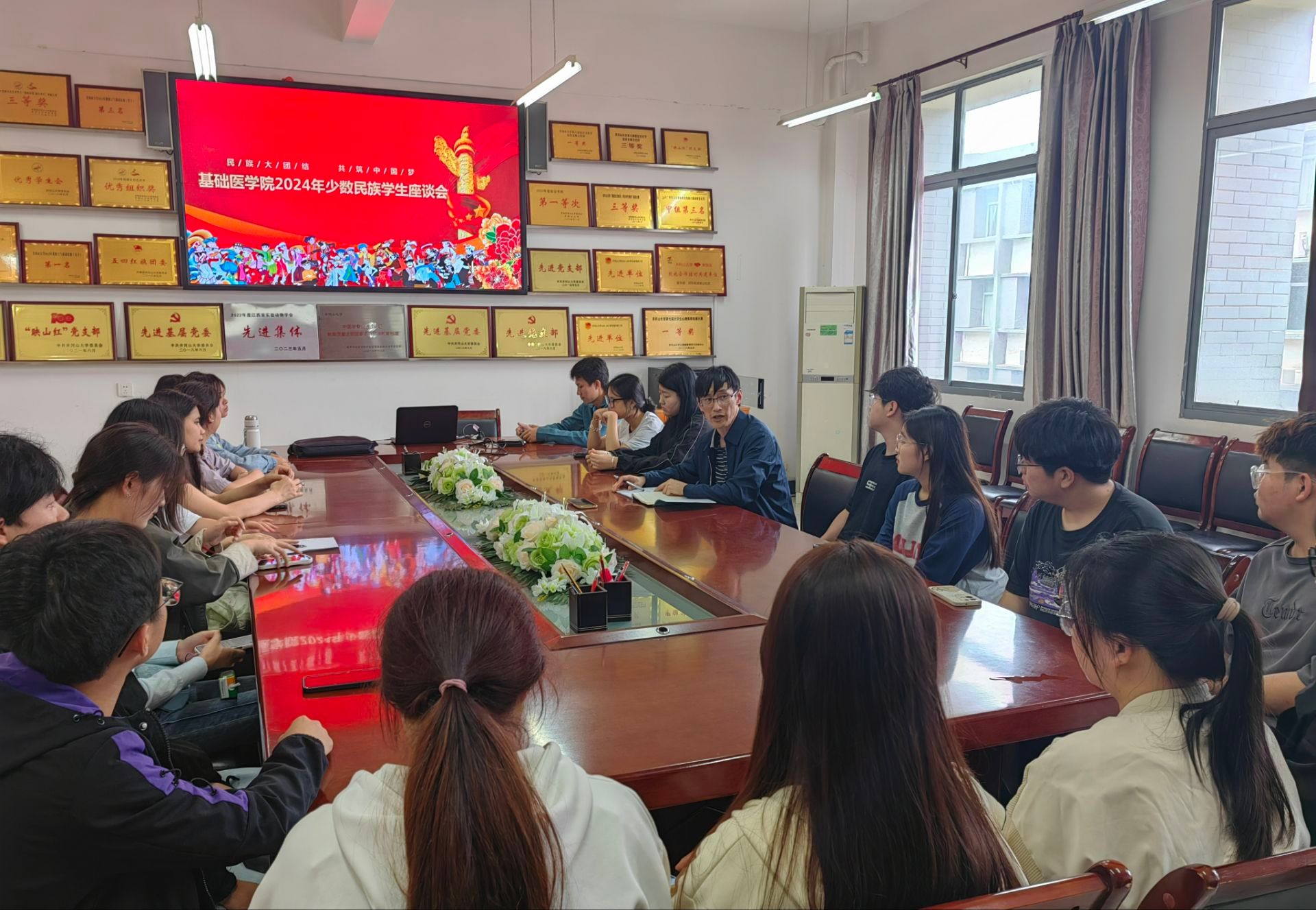 为进一步营造铸牢中华民族共同体意识的良好氛围,深化民族团结进步教育,扎实推进少数民族学生教育管理服务工作,促进学生成长成才,2024年4月25日,基础医学院召开了“民族团结一家亲”座谈会。