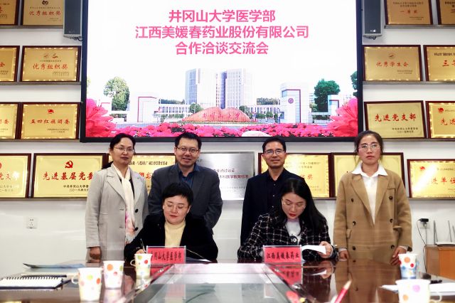 11月16日下午,井冈山大学医学部与江西广恩和药业股份有限公司的签约仪式在医学部会议室举行。江西美媛春药业有限公司董事长陈波、江西广恩和药业副总经理曹海燕、医学部党委书记康永平、副书记刘坤、副主任张坪兰、副主任宋明霞及我部药学系代表参加了本次活动。
