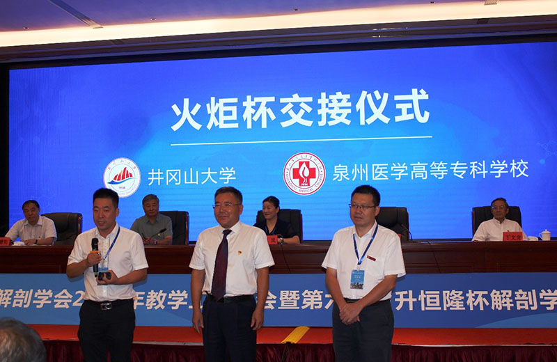 开幕式进行了象征会议精神和具有传承意义的火炬杯交接仪式。井冈山大学医学部将本届火炬杯归还给中国解剖学会教育与继续教育工作委员会,并由刘学政将火炬杯郑重交给2023年承办单位泉州医学高等专科学校。
