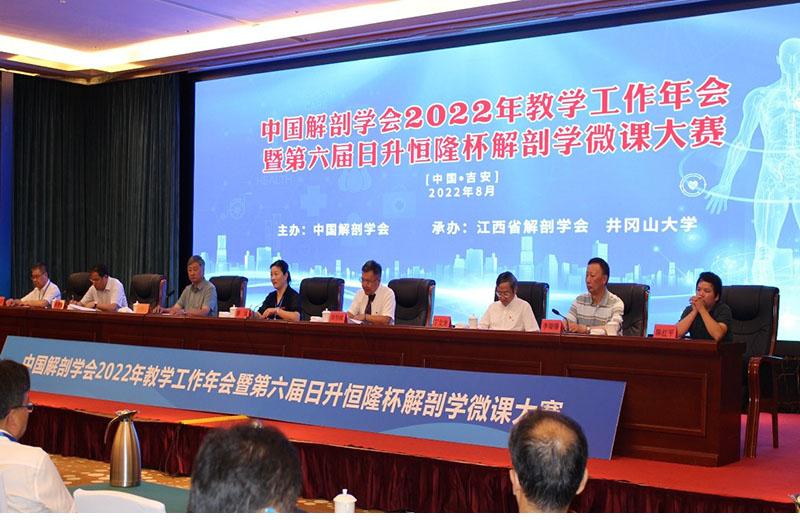 8月5日-8日,由中国解剖学会主办,江西省解剖学会、井冈山大学承办的“中国解剖学会2022年教学工作年会暨第六届日升恒隆杯解剖学微课大赛”在吉安召开。来自全国30余所高校的解剖学与组织胚胎学专家参加了会议。大会分为开幕式、大会报告、微课竞赛、经验交流、闭幕式等部分,并采用线上、线下相结合的方式进行了全程直播。