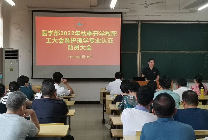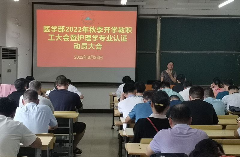 2022年8月28日,医学部2022年秋季开学教职工大会暨护理学专业认证动员大会顺利召开。校党委常委、副校长廖岚出席会议并讲话,医学部党委书记康永平主持会议。