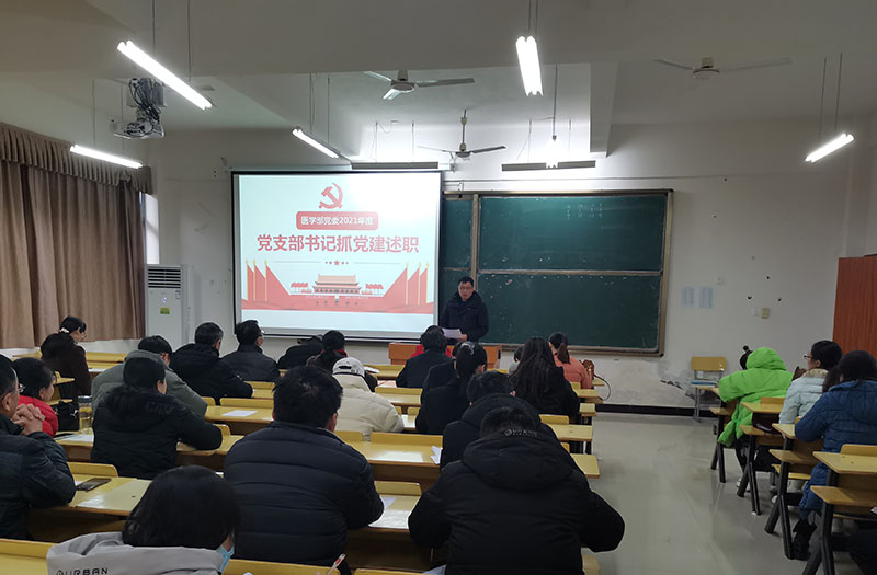 2022年1月7日,医学部2021年度基层党支部书记抓党建述职考核工作会议在20栋108室召开,校党委常委、副校长黄俭根出席会议,人文学院党委副书记张华代表校党委组织部莅临指导,医学部全体领导班子成员、全体教工党员及部分学生党员参加,会议由医学部党委副书记刘坤主持。
