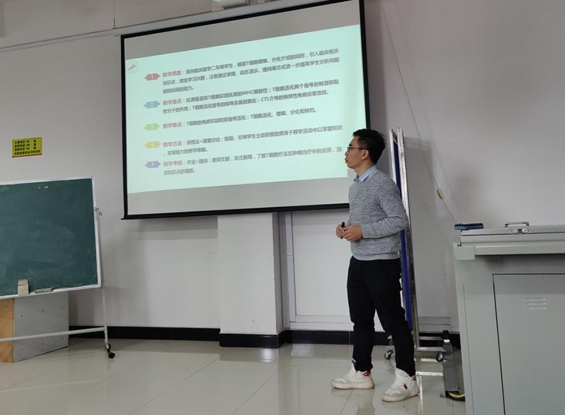 为加强青年教师队伍建设,搭建青年教师成长平台,培养青年教师爱岗敬业、严谨治学的态度,医学部于2021年10月22日上午在17栋203举办青年教师讲课比赛,比赛由张坪兰、廖家万、梁兆昌、蒋华担任评委,共12名教师参加比赛。