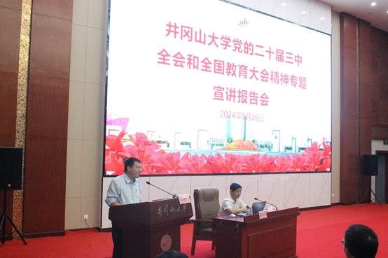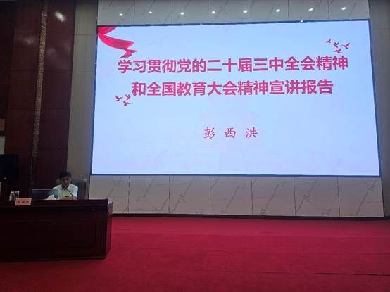 彭西洪紧紧围绕大会主题,结合学校发展实际,从深刻认识党的二十届三中全会精神的重大意义,深刻领会习近平总书记在党的二十届三中全会上的重要讲话精神,深刻理解进一步全面深化改革的重大举措,牢牢把握进一步全面深化改革的根本保证等四个方面对全会精神进行了全面深入系统的宣讲解读和深入阐释。同时就深入推进全面从严治党提出了要求。