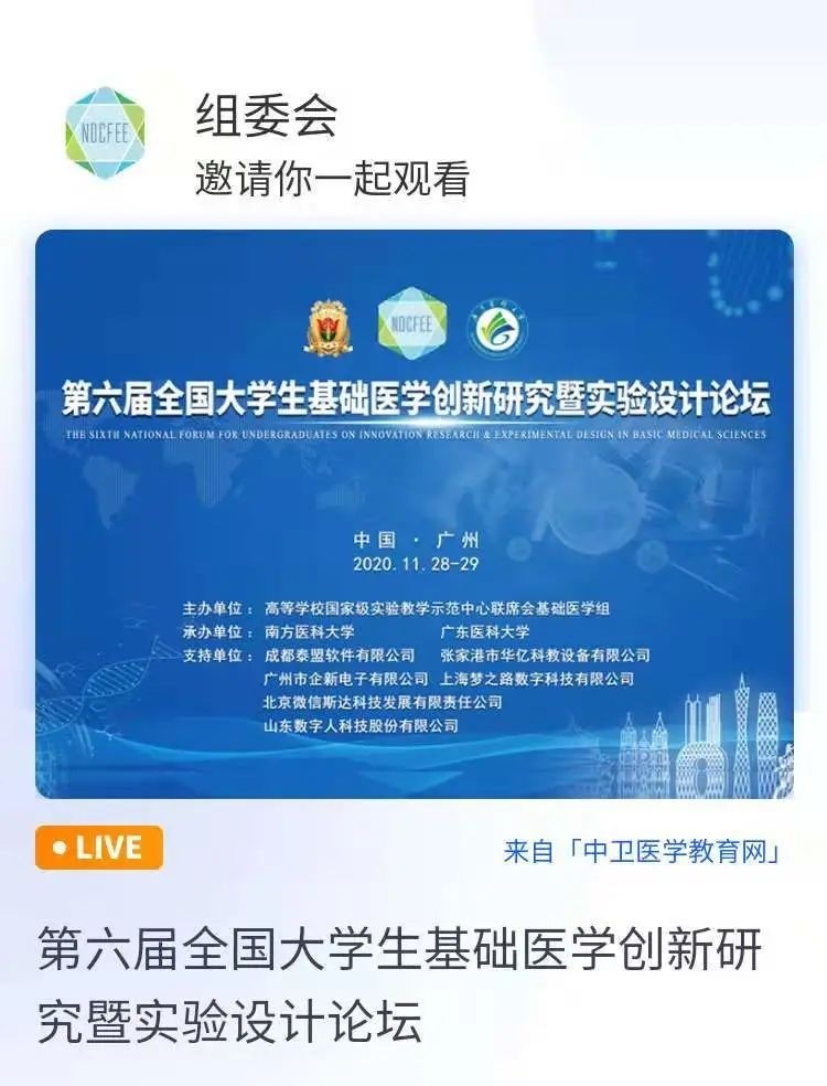 11月28日至29日,由高等学校国家级实验教学示范中心联席会基础医学组主办,南方医科大学及广东医科大学承办的“第六届全国大学生基础医学创新研究暨实验设计论坛”在广州举行,来自全国各地的114所高校的在校大学生参加了大赛,展示了自己设计的1651件参赛作品。经过筛选和评比,有507件参赛作品进入决赛,经过两天的激烈角逐,医学部四支队伍代表学校获得三等奖、优胜奖各两项。 据悉,由于疫情常态化管理,大赛采取线上答辩、线下评审的方式。来自医学部的17药学欧湘滢、杨命波,18药学黎茹,18临床余子楠等同学代表团队参加线上决赛。最终,欧湘滢和余子楠同学代表团队获得三等奖,即胡有生及胡煜辉老师所指导的《基于重叠PCR的点突变和点突变重组的斑马鱼PKR的dsRBD的功能分析》和李梦军老师指导的《硫化氢调控内质网应激对PFOS诱导神经细胞焦亡的影响及机制》项目。杨命波和黎茹同学代表团队获优胜奖,即黄玉珊老师指导的《基于Nrf2/keap1/ARE信号通路的银杏叶提取物抗缺氧/复氧损伤作用及表观遗传学机制研究》和黄小流老师指导的《基于16SrDNA测序技术探究马齿苋多糖对断奶大鼠肠道菌群的影响》项目。