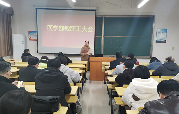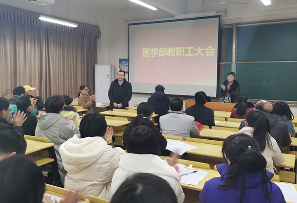 1月6日下午,医学部召开全体教职工大会和就业工作会议,会议由学部党委书记、副主任康永平主持,医学部班子成员和全体教职工一百五十余人参加。