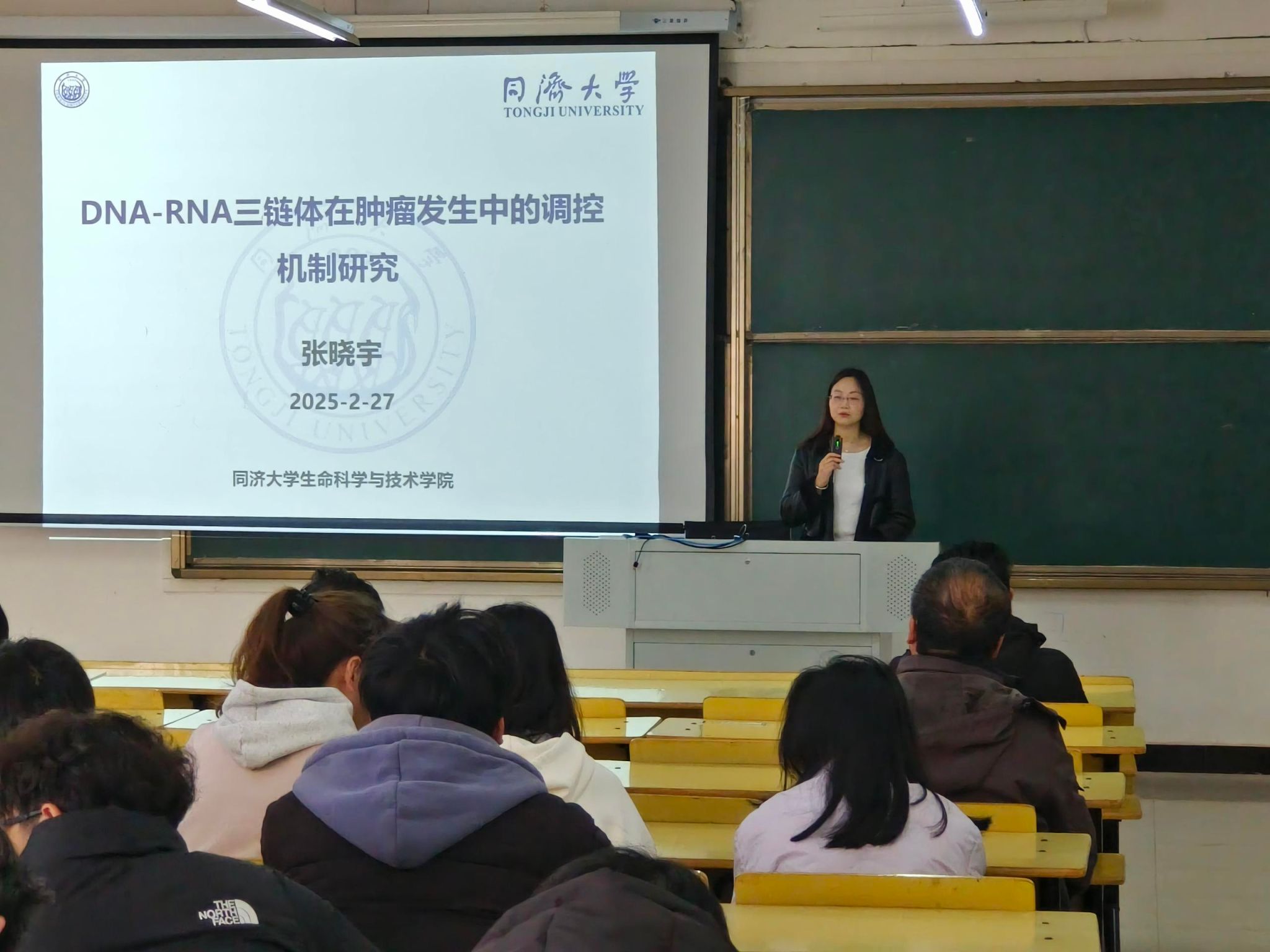 2月27日下午,同济大学生命科学与技术学院张晓宇老师受基础医学院邀请,开展题为“DNA-RNA 三链体在肿瘤发生中的调控机制研究”的学术讲座。本次活动由基础医学院副院长王伟业主持,学院相关专业的骨干教师和同学们聆听了报告。