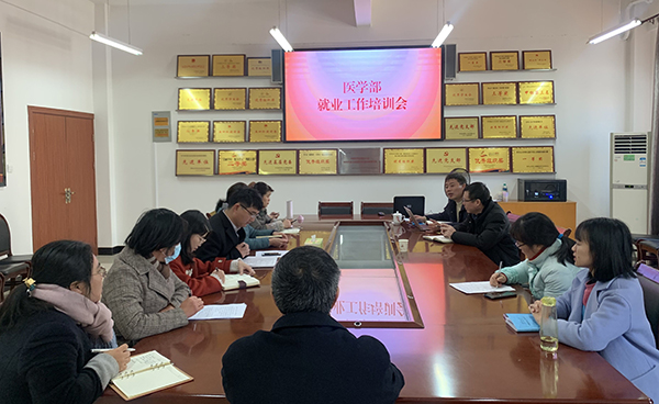 2021年1月14日上午,医学部召开就业工作培训会,医学部党委书记康永平出席,医学部党委副书记刘坤主持,就业干事及全体2021届毕业班班主任、辅导员参加会议。