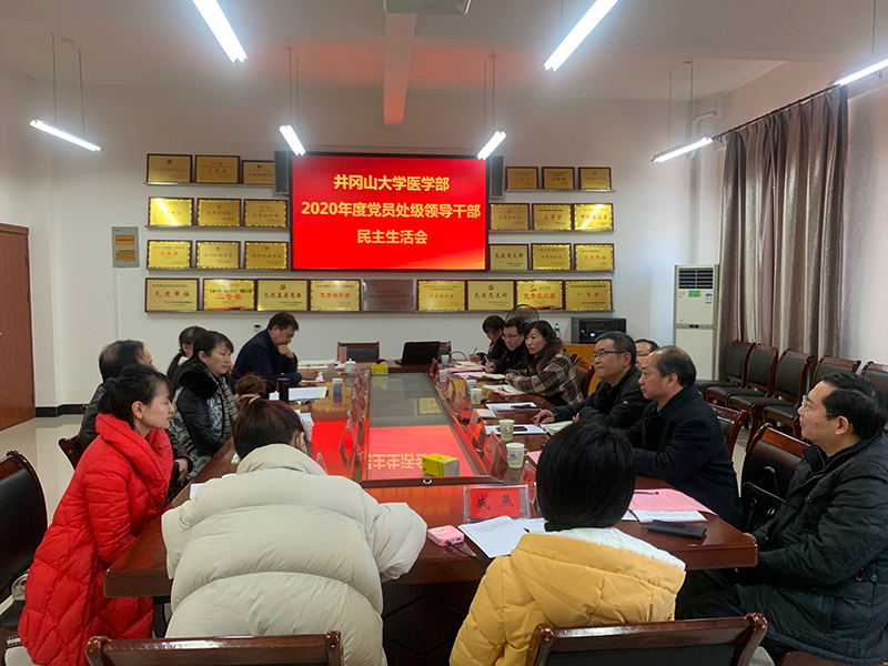 根据学校党委要求,按照上级党组织批准的方案,1月18日,医学部召开2020年处级党员领导干部民主生活会。校党委常委、副校长、医学部主任黄俭根同志、学校民主评议督导组成员刘繁梅、郭敏娜同志到会指导,医学部党委委员康永平、肖游章、肖凤、谭立宇、朱水华、张坪兰、刘坤出席会议,医学部副主任胡煜辉,党群有关工作人员、基层党支部以及教师党员代表列席会议。