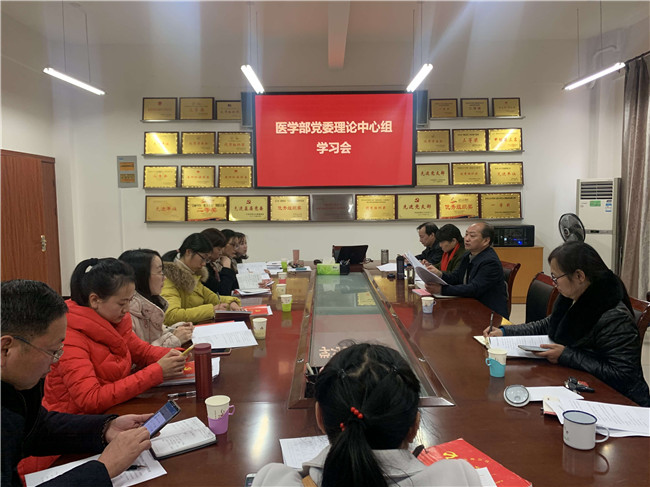 1月9日下午,医学部召开党支部书记述职评议考核会暨党委理论学习中心组学习会,校党委常委、副校长、医学部主任黄俭根到会指导。会议由党委书记肖游章主持,医学部班子成员、各党支部书记和科室负责人参加了会议。