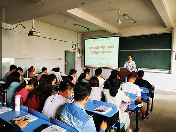 按学校要求,新生开学的第一周,医学部党委书记肖游章、常务副主任肖凤分别为各专业新生讲授《《红色卫生文化概论》课程,开讲新生“开学第一课”。