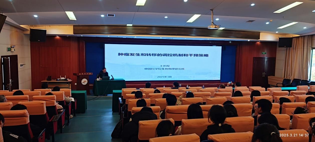 卜鹏程研究员以“营养代谢物调控肿瘤发生和转移的新机制”为主题展开演讲。他凭借深厚的学术积累与丰富的科研经验,通过详实的实验数据和案例,深入剖析了营养代谢物在肿瘤发生与转移过程中的调控机制,为肿瘤研究领域提供了新的思路与视角。其严谨且专业的讲解,使在场师生对肿瘤研究的前沿方向有了更清晰的认知。