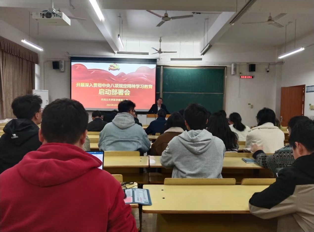 为深入贯彻扎实有序推动中央八项规定精神学习教育,按照中央、省委和学校党委的统一部署,3月28日下午,医学部党工委、中医药学院党委和基础医学院党委召开开展深入贯彻中央八项规定精神学习教育启动部署会。会议由医学部党工委副书记康永平主持,医学部、中医药学院、基础医学院领导班子、全体党支部书记及支部委员和在校学生党员代表参加了会议。