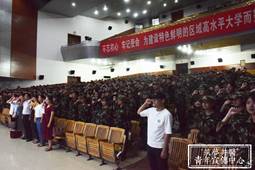 期间,全体新生在18临床本三班陶亮同学的带领下庄严宣誓。老生代表16预防本一班蒋伟鹏、新生代表19护理本二班张安然分别做了发言。