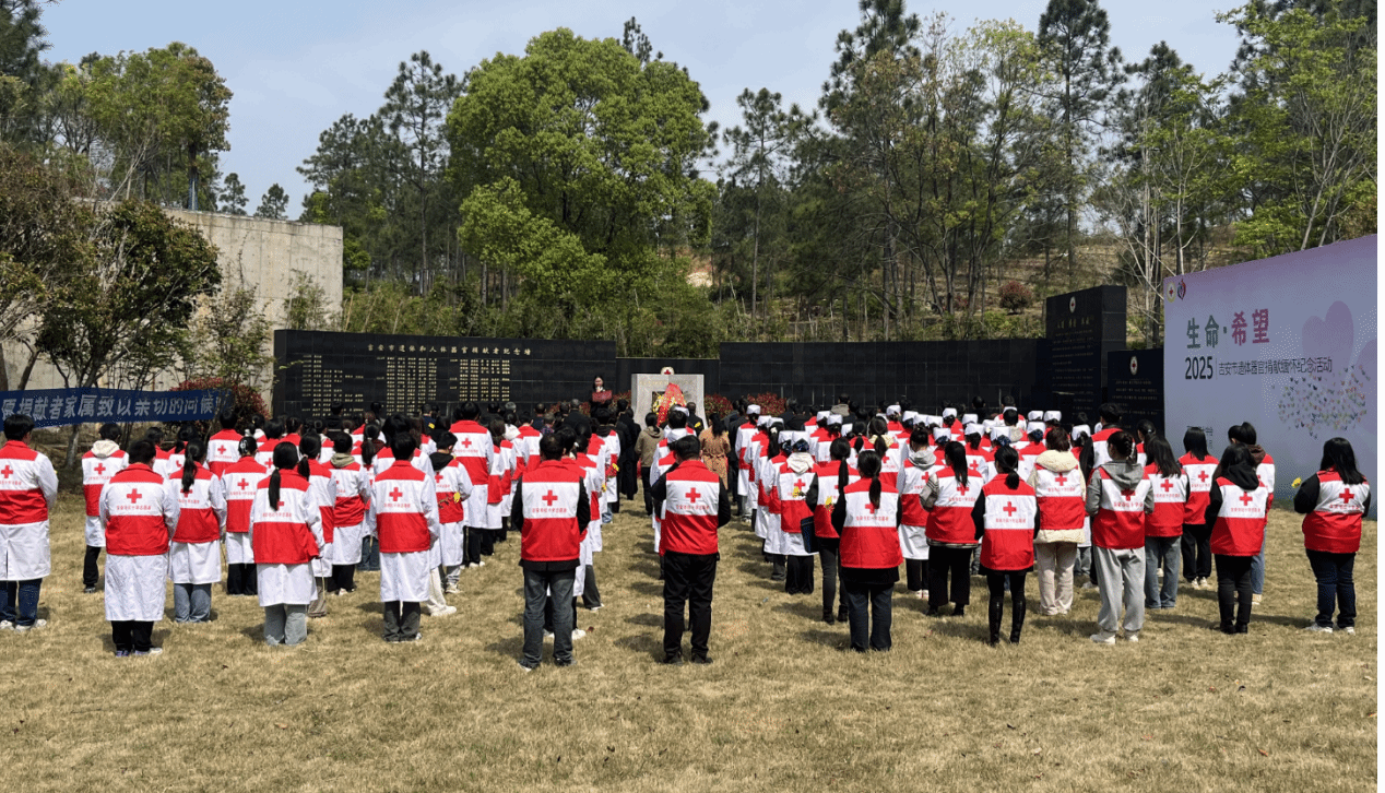 为弘扬无私奉献的大爱精神,4 月 2 日上午,吉安市红十字会在吉州区殡葬服务中心遗体器官捐献者纪念园举办 2025 年全市遗体器官捐献缅怀纪念活动。医学部副主任尹汉明、护理学院副书记刘坤率 40 名师生代表参加活动,以庄重仪式致敬遗体器官捐献者的生命馈赠。