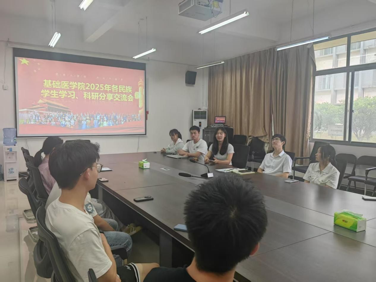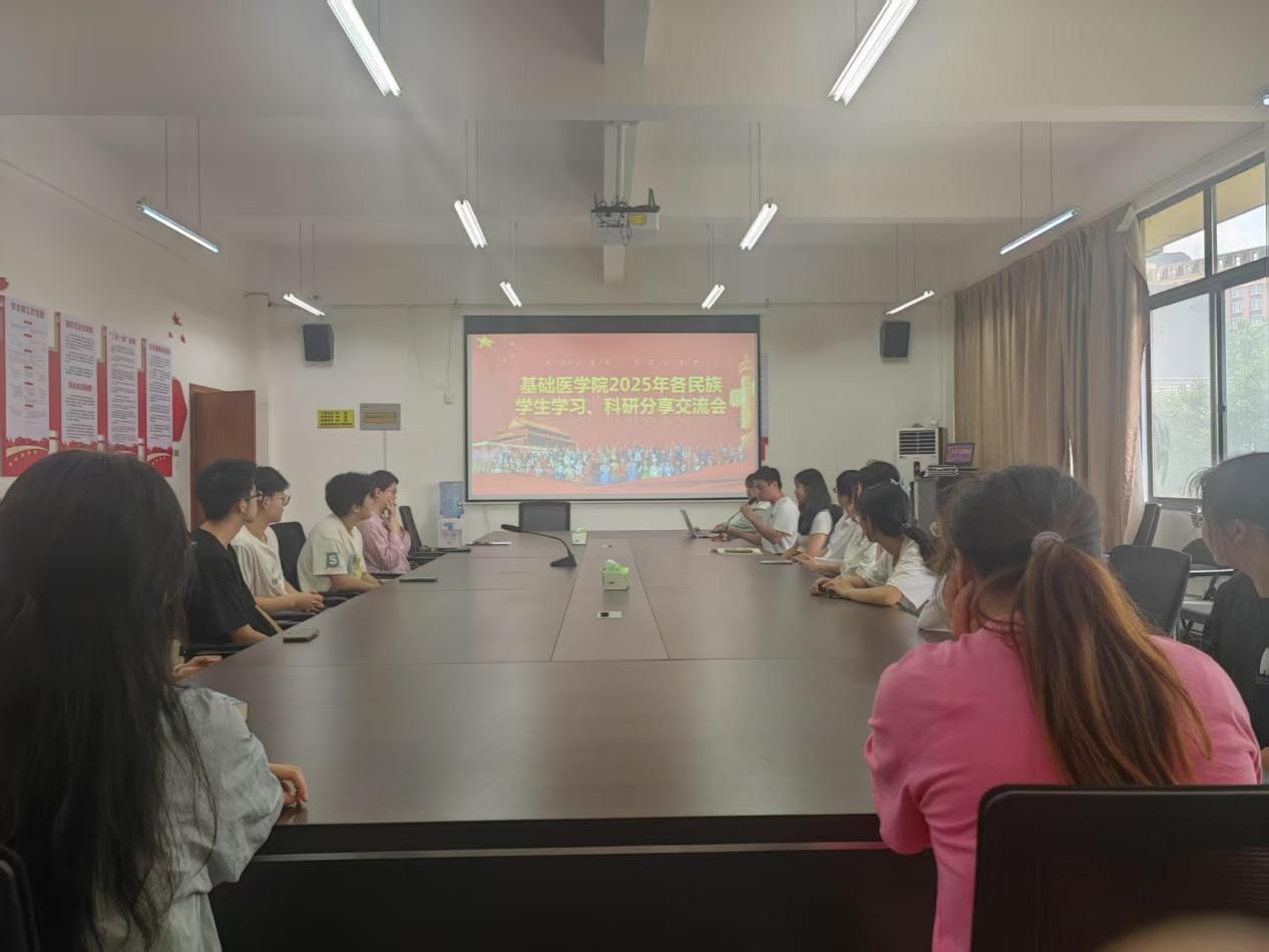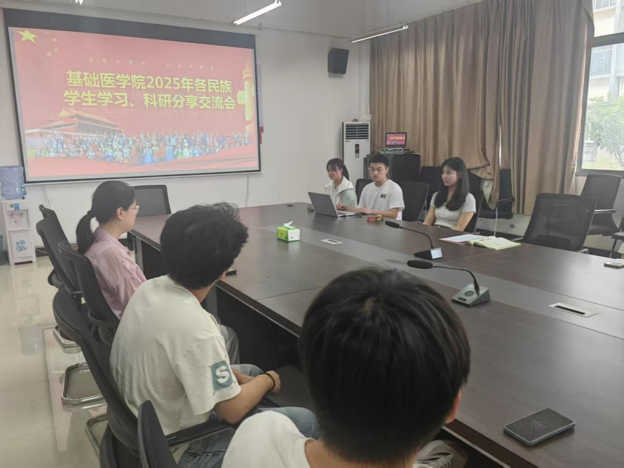 为进一步加强各民族学生交流交往交融,实现在学习、科研上共同进步、共同成长的目标。5月22日下午,基础医学院在17栋111会议室成功举办了2025年各民族学生学习、科研分享交流会。学院党委副书记万建新、学生科李海栗老师以及来自各民族学生代表齐聚一堂,共同参与了此次分享交流。