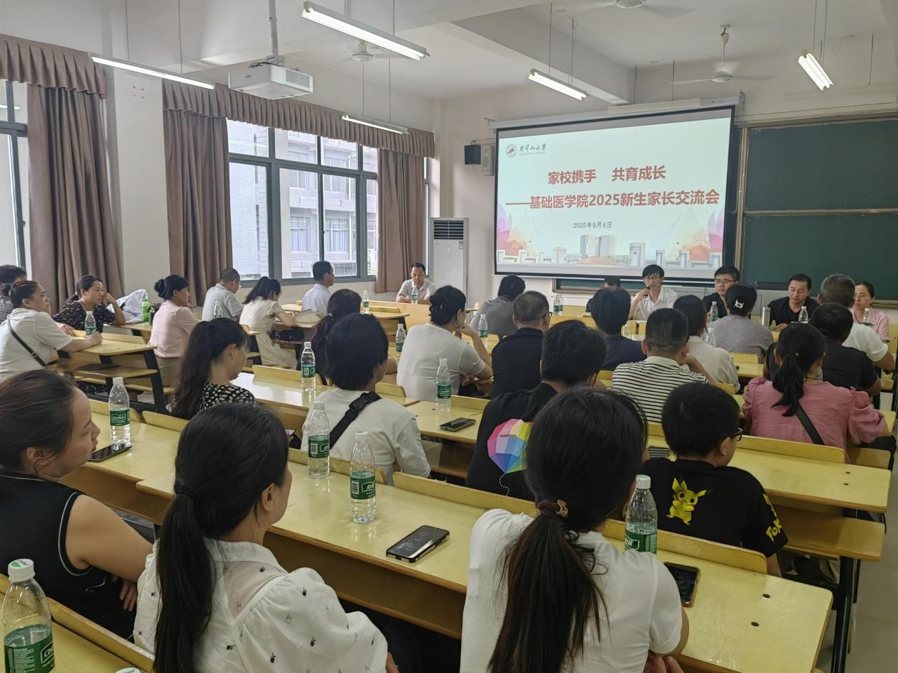 为深化家校协同育人机制,搭建学校与家庭的沟通桥梁,助力新生顺利适应大学生活,9月5日下午,基础医学院在20栋209教室召开了2025级本科新生家长见面会。学院党委副书记万建新、副院长王伟业,及各系主任、科室负责人、新生班主任与辅导员出席会议,与来自全国各地的新生家长面对面交流,共探学生成长成才路径。
