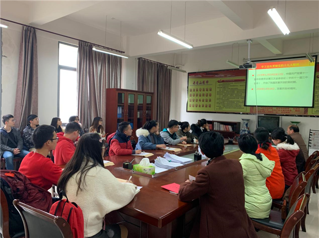 2018年12月25日医学部学生第三党支部在17栋410会议室召开支部大会,医学部党委书记、学生第三支部党员肖游章给学生第三党支部全体党员上了一堂《江西改革开放四十周年》微党课,他用一组组极具说服力的数据向大家数说着改革开放四十周年以来江西省在人均收入、经济总量、人均GDP等各方面取得的巨大成就,同时他还结合亲身经历向大家详细地介绍了改革开放这四十周年以来人们生活中产生的改变。