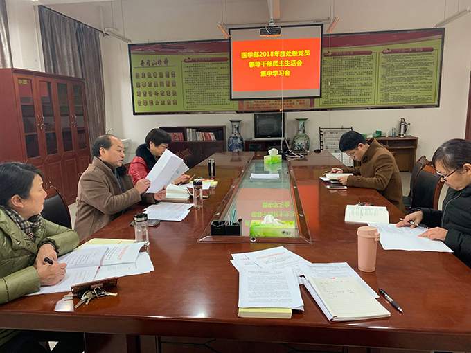 根据《医学部2018年度处级党员领导干部民主生活会实施方案》,1月9日下午,医学部召开处级党员领导干部集中学习会。会议由学部党委书记肖游章主持,班子成员中的党员领导干部参加。