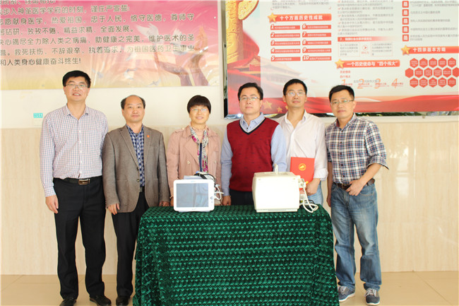 10月26日,校友捐赠仪器设备仪式在医学部17栋一楼大厅举行,我校1998级生物医学工程专业校友、井大医工联盟科技有限公司董事长张春林等为表达对母校60华诞的祝贺,代表公司向医学部捐赠超声一台、心电监护仪一台,总价值约5万元。学校党委(校长)办公室副主任黎文森,医学部党委书记肖游章,党委副书记、常务副主任肖凤等出席捐赠仪式。肖凤向张春林颁发捐赠证书。