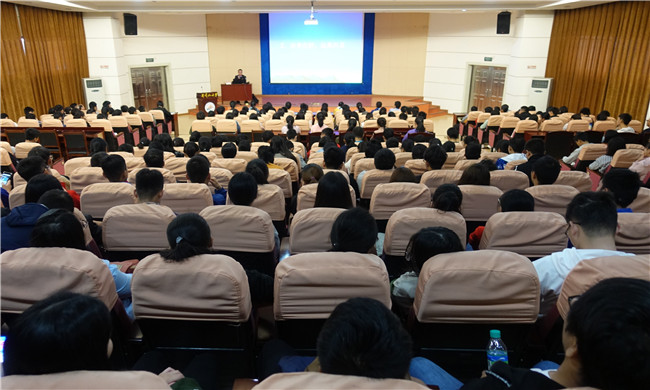 林立明校友以校园安全为主题,围绕“珍爱生命,远离毒品”、“心胸宽广,对抗抑郁”、“安全用电,预防火灾”、“限制饮酒,劳逸结合”、“明辨是非,不贪便宜”等方面向同学们进行深入讲解。通过十数个真实而残酷的案例,伴以林立明生动而深刻的讲述,在场同学深感震撼,现场不时爆发阵阵掌声,气氛高涨。林立明指出,公安事业急需医学人才,鼓励当代医学生为祖国公安事业出一份力。