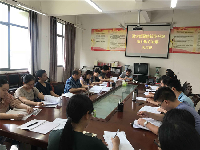 6月12日上午,医学部开展了“聚焦转型升级 助力地方发展”大讨论,讨论会由常务副主任肖凤主持,部领导班子成员和各系(部)负责人、学科带头人和护理学院全体教师参加。