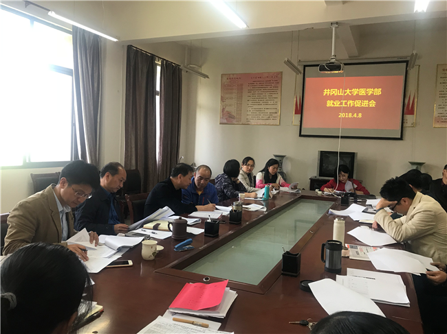 2018年4月9日,医学部召开本年度第三次就业工作促进会暨医学类专业专场招聘动员会,会议由医学部党委副书记黄立明主持。医学部党委书记肖游章、副书记习宁英,副主任胡煜辉、张坪兰、曹进国,各系部各专业负责人,学团办全体教师和全体毕业生班主任辅导员参加了会议。