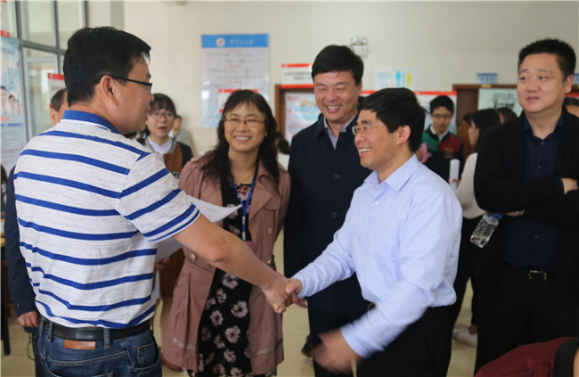 4月14日,由井冈山大学招生就业指导处主办,医学部承办的“井冈山大学2018届医学类毕业生专场招聘会”在医学部楼群成功举行。党委常委、副校长黄俭根、肖宜安在招生就业指导处、医学部的负责人陪同下巡视了招聘现场并对招聘活动的顺利举办给予了充分肯定。