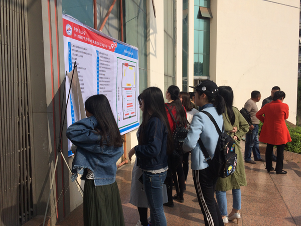 4月1日上午,由学校主办、医学部承办的2017届医学类毕业生专场招聘会在医学校区综合礼堂顺利举行。本次招聘会邀请了来自广州、深圳、杭州、宁波、井冈山、赣州等地市的50余家用人单位前来参加,其中医院22家,企业35家,公办单位12家,私营企业40余家,为医学部毕业生提供了临床、口腔、护理、影像、检验、放射、麻醉、心电、药品销售、管理等350多个岗位,需求人数900余人。医学部临床、中医、口腔、药学、护理、预防专业600余名毕业生参加了本次招聘会。