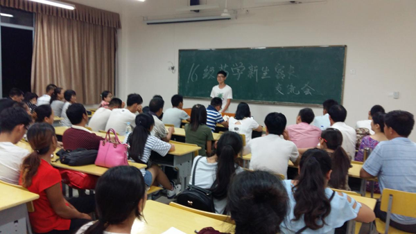 16级药学专业于105教室召开,相关部领导为黄玉珊,专业解读教师为梁兆昌和宋明霞