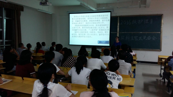 16级护理专业于106教室召开,相关部领导为朱水华、张坪兰,专业解读教师为朱水华和游睿芳