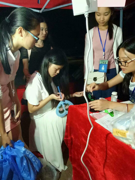 此外,医学部中医爱好者协会、自救互助协会为新生们准备了免费降火凉茶和绿豆糖水,让新生在刚踏入校园时感受到家一般的温暖,也让新生家长们在经历了长途跋涉后,感受到医学部的细心体贴,获得了一致好评。迎新过程中,一位新生意外受伤,学长学姐们根据所学医学知识,当机立断,立刻为该新生处理伤口,确保其伤势无碍后再送到宿舍,临走还不忘叮嘱注意安全。