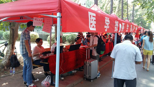 金秋九月,丹桂飘香。为确保迎新工作顺利进行,9月9日上午,医学部团委学生会干部和志愿者们提前来到迎新点,做好正式迎新的各项准备工作。班主任辅导员和各位班主任助理也精神饱满,期待着新同学的到来,学部分管学生工作副书记与团委与学生工作办公室相关负责老师早早到现场指导监督,医学部书记李裕福、常务副主任肖凤亲临现场与学生和家长热情交谈。