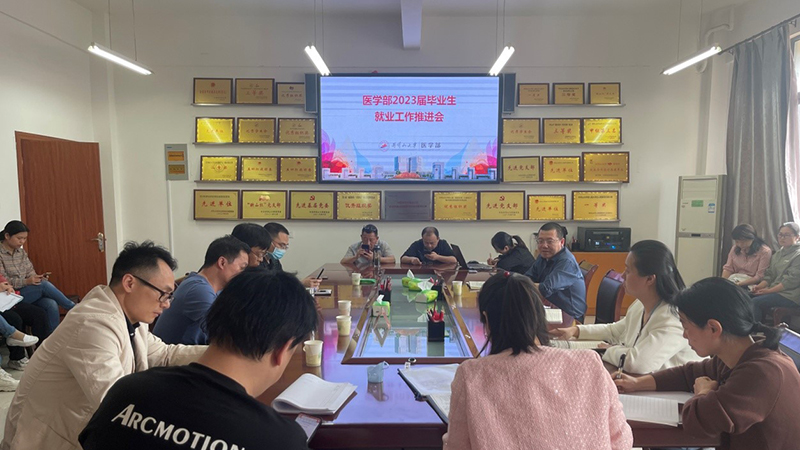 5月8日下午,医学部在行政楼410室召开2023届毕业生第二次就业工作推进会,医学部党委书记康永平主持,医学部党委副书记周溪,各系部主任、专业负责人、就业干事以及2023届毕业班班主任、辅导员参会。