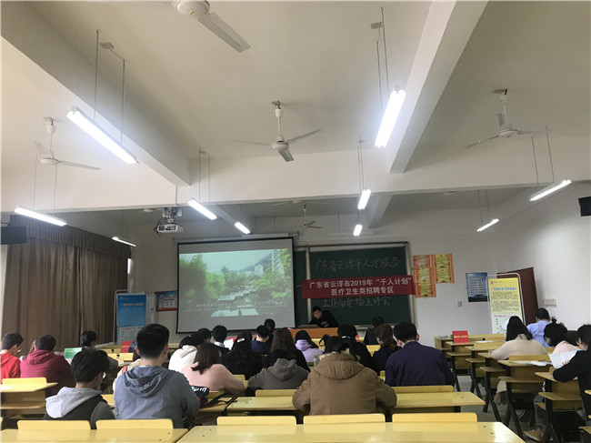 2019年4月11日14:30,广东省云浮市人才服务工作局专场宣讲会在20栋109顺利举行。宣讲会由医学部就业干事刘宁老师主持,云浮市及其下设市县四家医院的负责人及部分医学部应届毕业生参会。