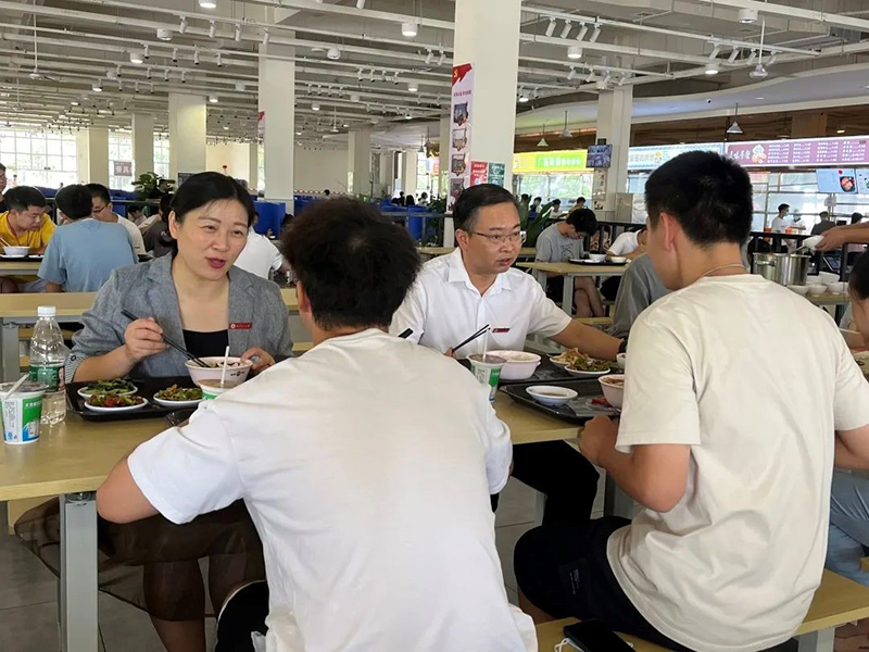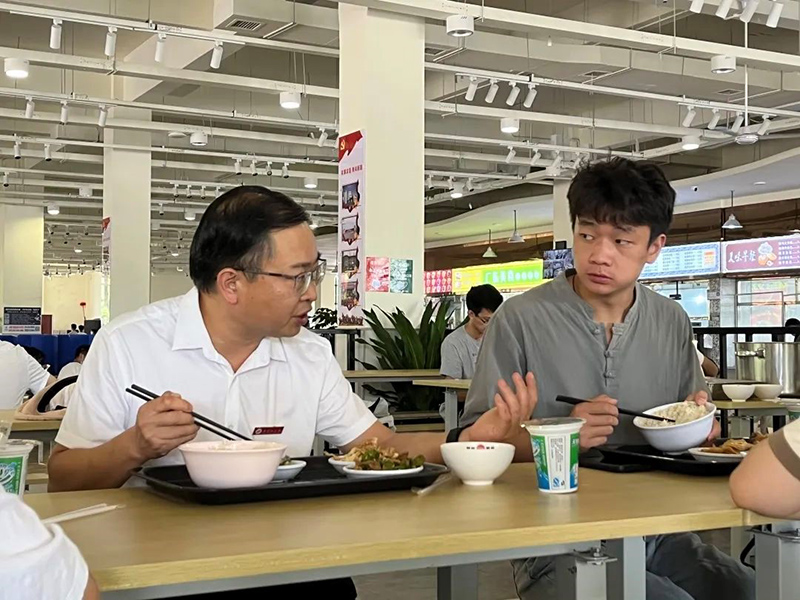 校领导的亲切看望,热情的话语,悉心的问候,让食堂欢声笑语,洋溢着师生间浓浓的情谊。在亲切的言谈中,同学们感受到了学校的关怀和家一般的温暖。