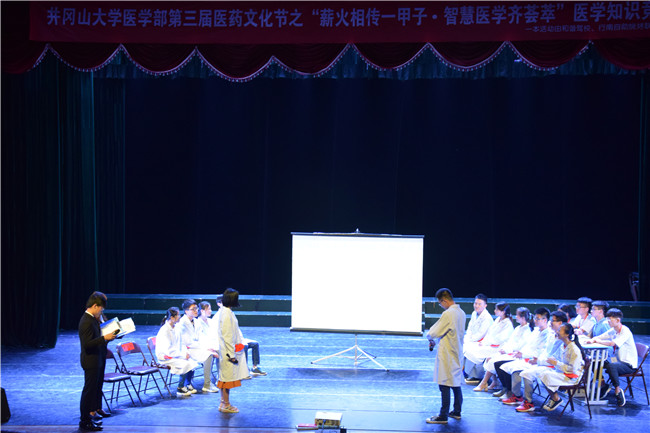 2018年5月13日,由井冈山大学医学部团委学生会主办,组织部携手大学生自救互助协会承办的医药文化节系列活动之“薪火相传一甲子 智慧医学齐荟萃”医学知识竞赛决赛于8栋音乐厅举行。出席本次知识竞赛的嘉宾有:冯建平老师、尹三凤老师,人文学院团委学生会主席赵玲娜,红色文化推广协会理事长彭紫瑶,中医药爱好者协会副理事长董月凤。