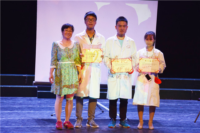 在主持人讲解比赛规则后,比赛正式开始。本场比赛采取车轮战的对决方式,参赛选手按次序进行一对一答题对决,在分数相差二十分后,分数高的选手守擂,继续与下一位选手进行对决。知识竞赛的题目涵盖了医学知识、校史以及生活常识。参赛选手在这样紧张的气氛下也能够从容淡定,应对自如,实属不易。比赛间隙,主持人与现场观众进行了互动,并为回答正确的观众准备了精美礼品。一轮又一轮的答题环节难倒了不少选手,比到精彩之处现场观众报以阵阵热烈的掌声。最终,本次竞赛获得一等奖的是16口腔本一班的沈秉新,获得二等奖的是16临床本二班的李文杰,获得三等奖的是15临床本一班的古双秦。冯建平老师对比赛进行了精彩的点评。尹三凤老师为获奖选手颁奖并合影留念。